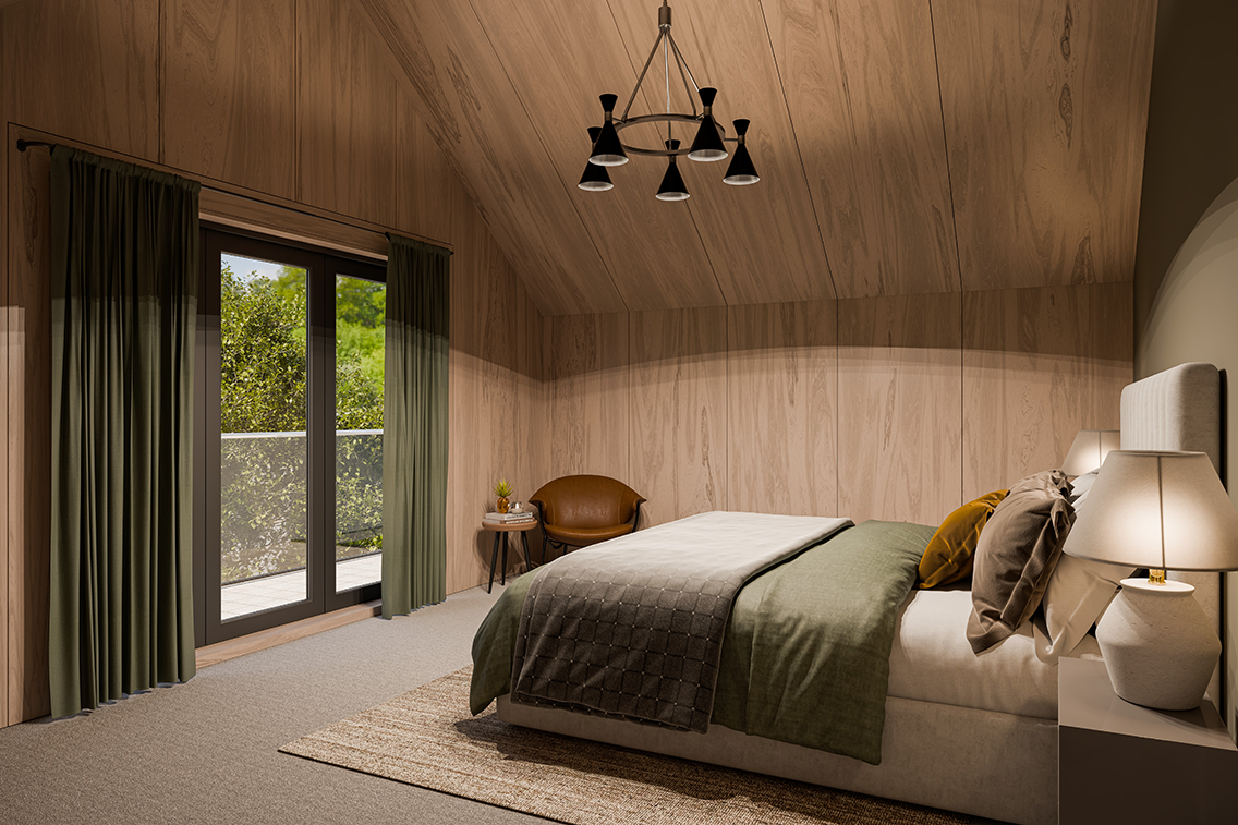 The first challenge was to rework the chalet bungalow’s upper floor. Previously constrained, it has been opened up into dramatic, livable spaces that capture and frame the panoramic views. With new volumes and carefully positioned glazing, the first floor now feels both expansive and deeply connected to the surrounding landscape.